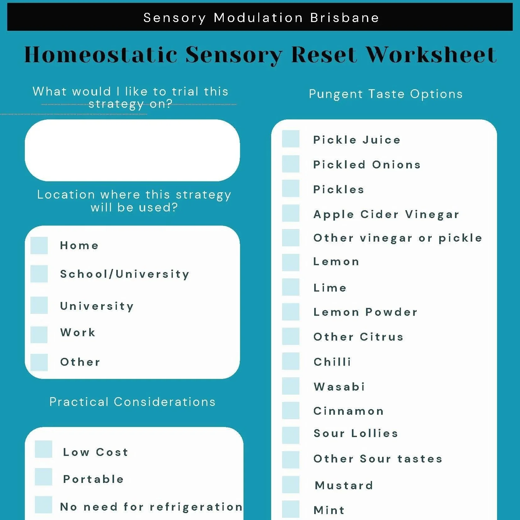 In accessing this information, you are agreeing to the copyright and disclaimer of Sensory Modulation Brisbane.